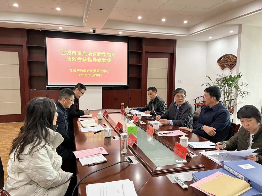 2021年11月30日上午,盐城市社科联党组书记、主席李晓奇,市社科联主任左建华,市社科联主任高齐一行莅临我校,检查验收盐城市重点培育新型智库(盐城产教融合发展研究中心)绩效考核指标完成情况。校党委书记邵从清,盐城产教融合发展研究中心主任刘华,科研处处长王曙东,盐城产教融合发展研究中心副主任杜梅及相关人员参加会议。