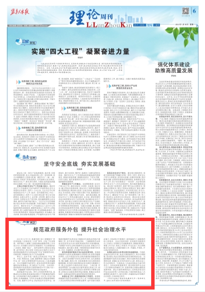 1月10日,《盐阜大众报》理论周刊版刊发了由盐城产教融合发展研究中心智库、汽车与交通学院王元生副教授撰写的研究报告《规范政府服务外包 提升社会治理水平》,此文针对2021年12月6日,南通市海门区三星镇发生“多名穿制服人员围抢老人甘蔗”事件,引发了负面舆情。事件缘于三星镇人民政府购买服务的第三方市容公司人员在履行合同约定的服务时,充当城管执法人员角色,粗暴“执法”。虽然该事件已得到妥善处理,卖甘蔗老人得以安慰,但是由此引发的公众对于政府购买服务所衍生的执法权“外包”质疑仍然存在,对政府部门形象和公信力产生负面影响。对如何规范政府服务外包,提升社会治理水平,提出建议。