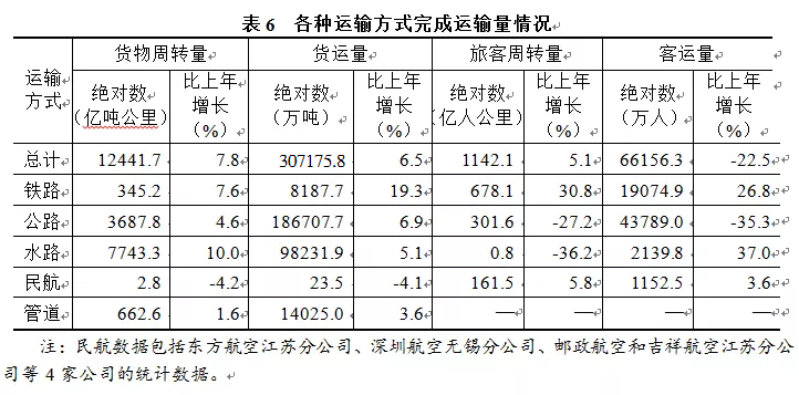 交通运输业总体平稳。全省铁公水空管等五种运输方式完成货物运输量比上年增长6.5%,货物周转量增长7.8%;旅客运输量下降22.5%,旅客周转量增长5.1%。全省机场飞机起降43.7万架次,比上年下降1.8%;旅客吞吐量3941.4万人次,增长0.5%;货邮吞吐量65.3万吨,下降2.8%。全省港口完成货物吞吐量32.1亿吨,比上年增长8.2%,其中外贸货物吞吐量5.9亿吨,增长6.6%;集装箱吞吐量2180.1万标准集装箱,增长15%。年末全省公路里程15.9万公里,比上年末增加414公里,其中,高速公路里程5028公里。铁路营业里程4221.9公里,其中,高速铁路里程2212公里,比上年增加191公里;铁路正线延展长度7591.7公里,比上年增加366.3公里。年末民用汽车保有量2187万辆,比上年末增长7%,净增142.6万辆。年末私人汽车保有量1862.7万辆,比上年末增长6.6%,净增114.8万辆;其中,私人轿车保有量1253.5万辆,增长5.5%,净增90.5万辆。