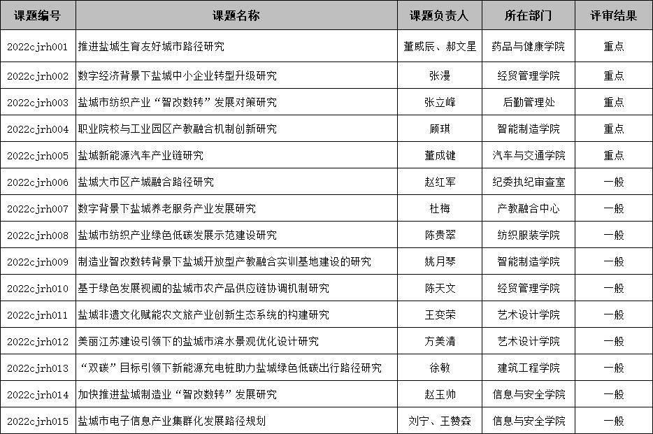 根据《关于申报盐城产教融合发展研究中心2022年度智库研究课题的通知》评审要求,近期,产教融合发展研究中心组织专家对申报材料进行评审。现对立项的15项开放课题进行公示。公示期:2022104日至2022108日。如有异议,请在公示期内向学校产教融合发展研究中心反映。联系人:徐老师,电话:0515-88418460