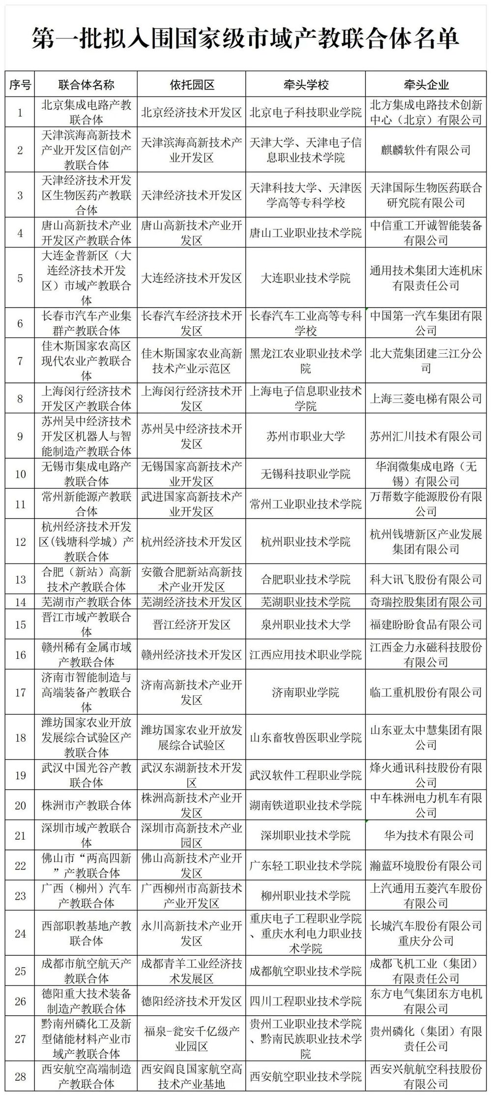 关于第一批拟入围国家级市域产教联合体名单的公示